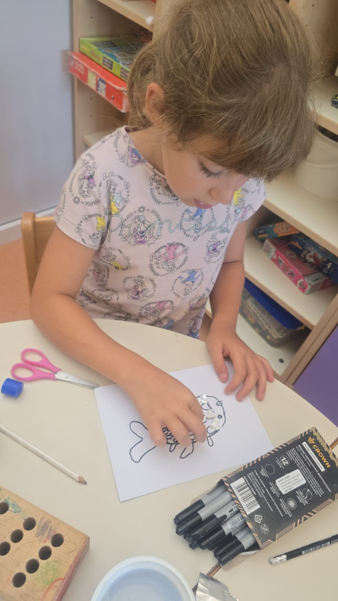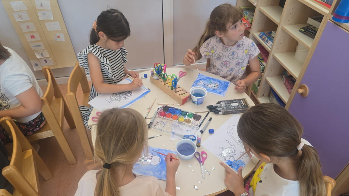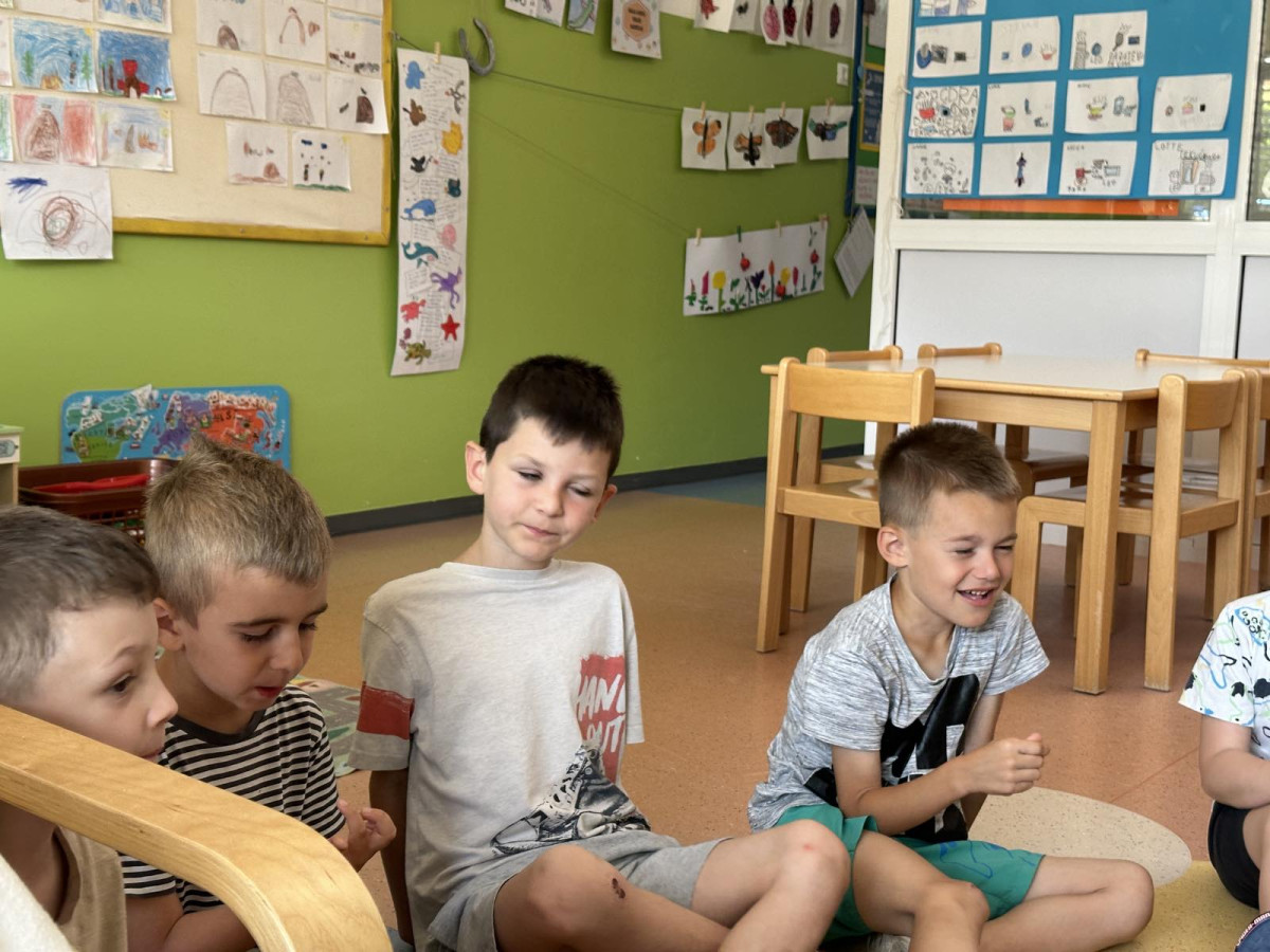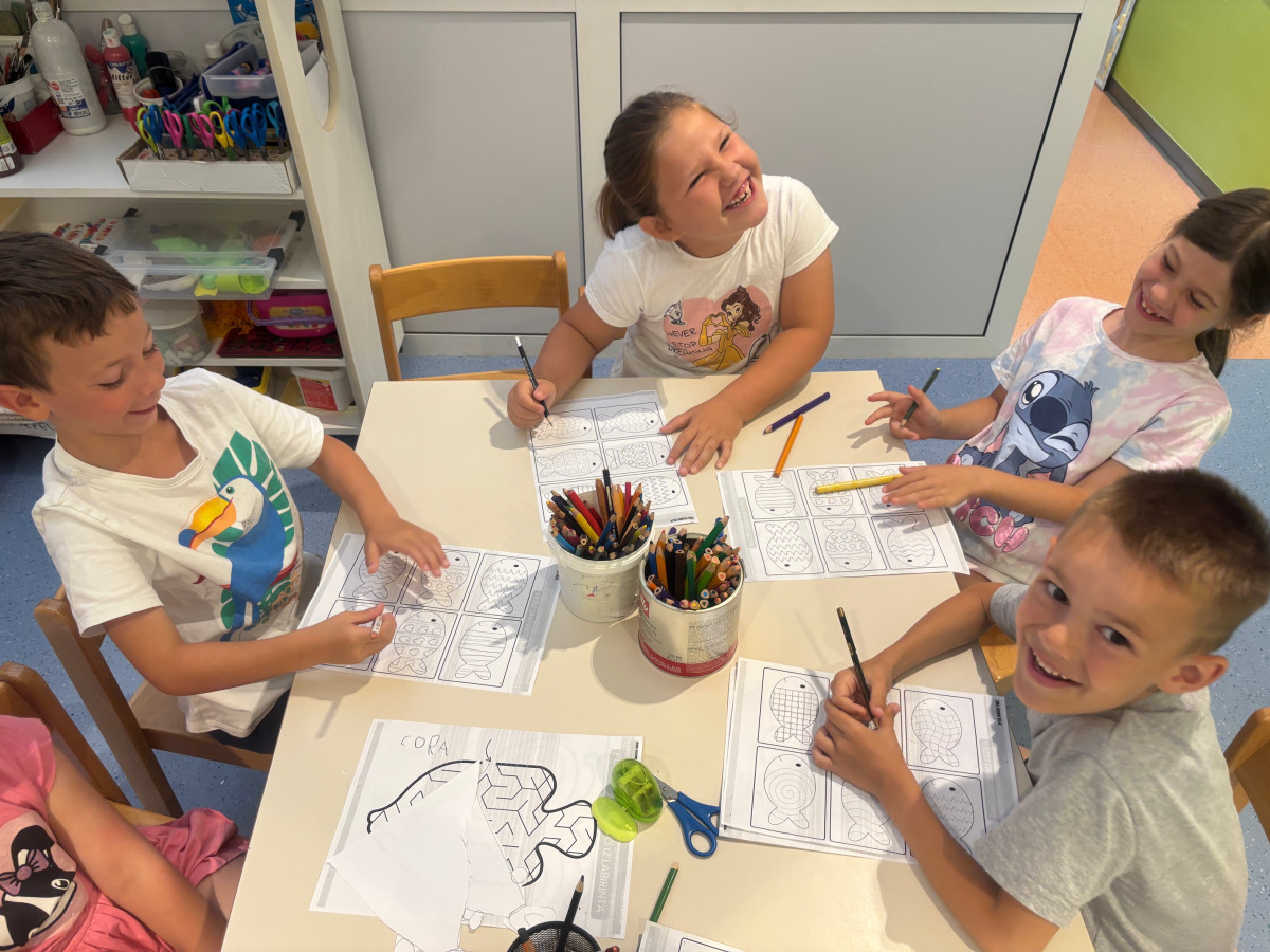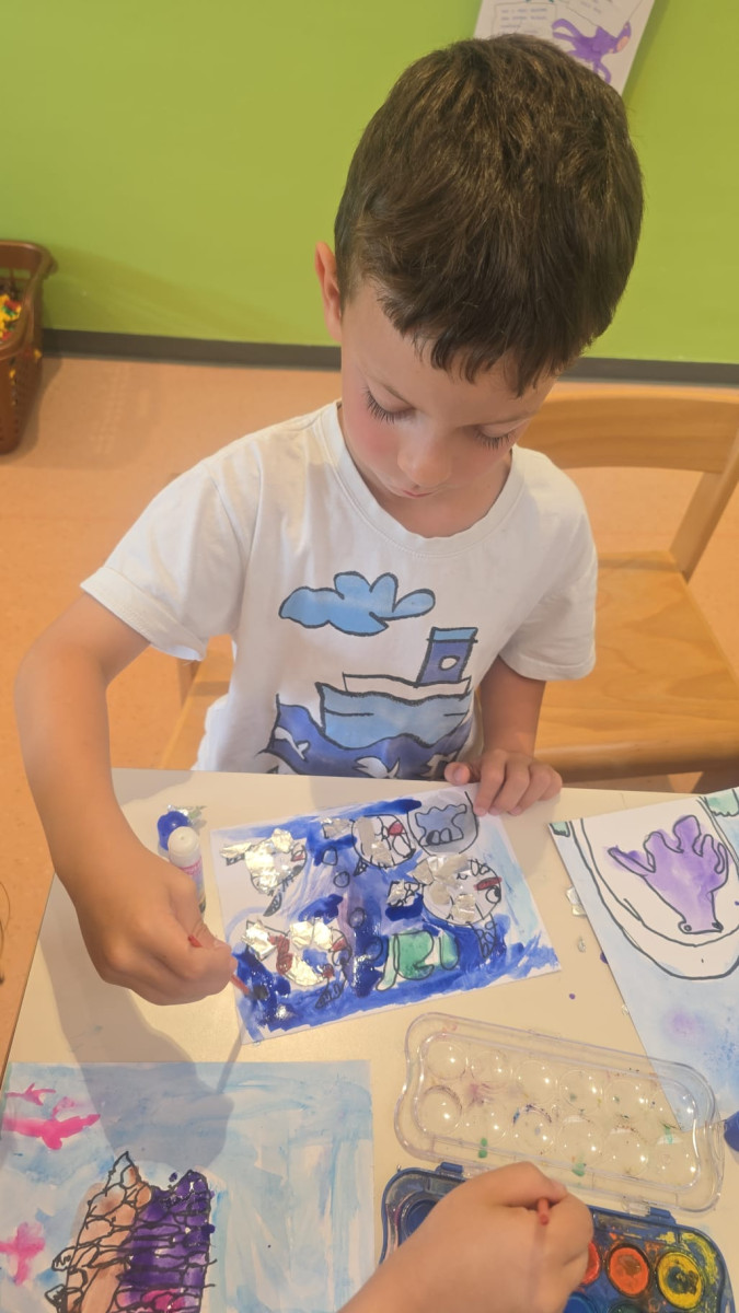 Osim raka Slanka djeca su se prisjetila i priče „Riba duginih boja“, te tko sve živi u moru. Zabavljali smo se pogađanjem morskih zagonetki, slikanjem, crtanjem, igrom kinetičkim pijeskom, igrom u očišćenoj drvenoj kućici u dvorištu koju su djeca u suradnji s odgojiteljicama i spremačicom Anom i Nadom očistila i pospremila za ljetnu igru.