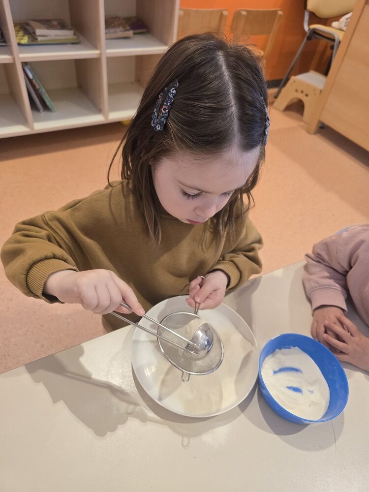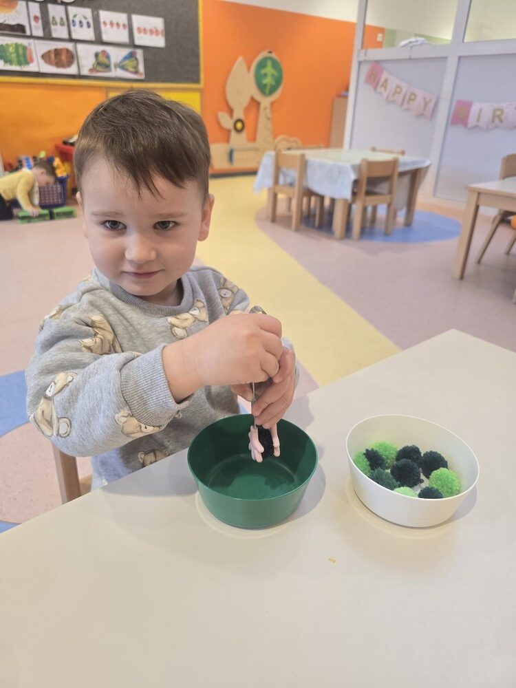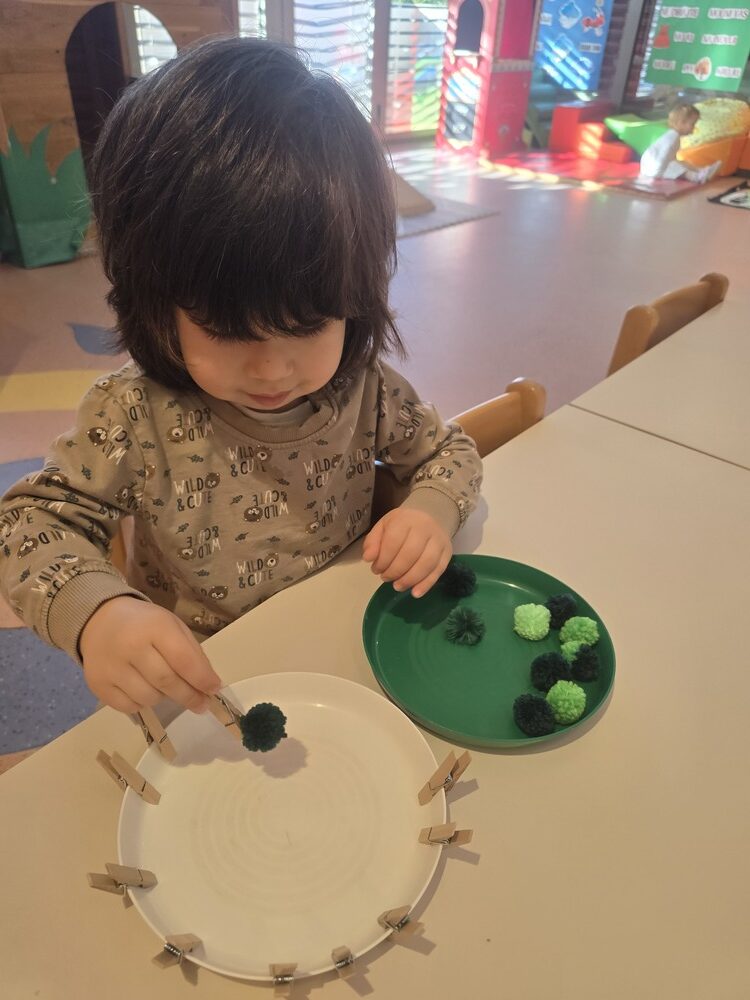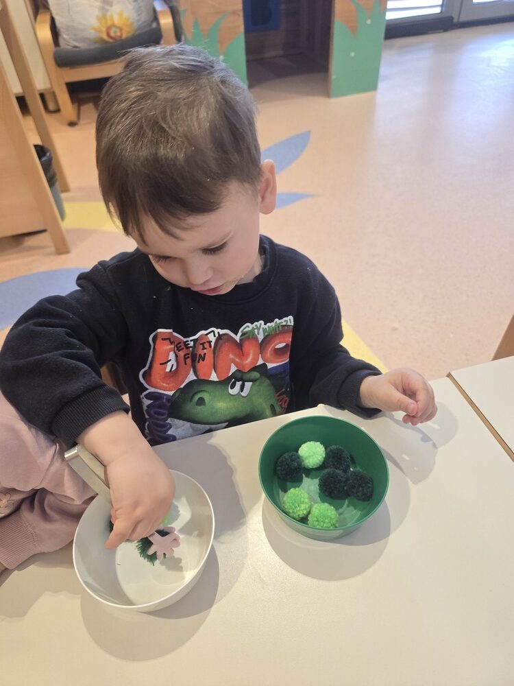 U našu skupinu stigle su nove igre po Montessori pedagogiji koje su izazvale veliki interes kod djece. Pincete, štipaljke , palenta i ponponi postali su naša svakodnevica, a pomoću njih razvijali smo pincentni hvat , razvoj ručnog zgloba i koordinaciju oko-ruka.