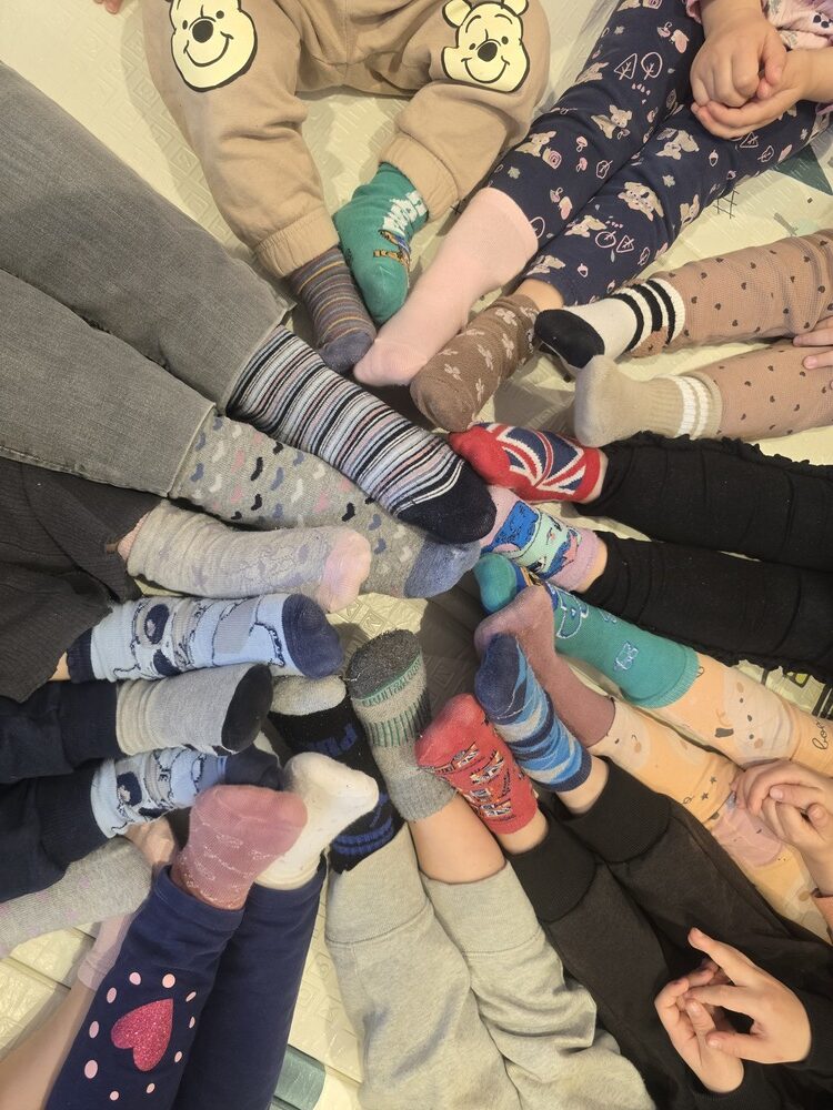 Kroz mjesec smo obilježili Dan očeva tako što smo izradili čestitke za tate i čitali slikovnicu u rimi „ Čudesni tata“. Zajedno sa Prepelicama obilježili smo svjetski dan sindroma Down obuvanjem različitih čarapa.