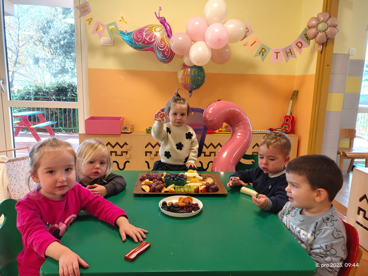 Proslavili smo i 2. Gretin rođendan uz čašćenje voćem, pjevanje i ples. Sadili smo pšenicu te s veseljem promatrali njezin rast. Uz sve to, vježbali smo motoriku na našem didaktičkom boru stavljajući pompone, a kroz senzorne igre s pijeskom i rižom u boji istraživali smo različite teksture.