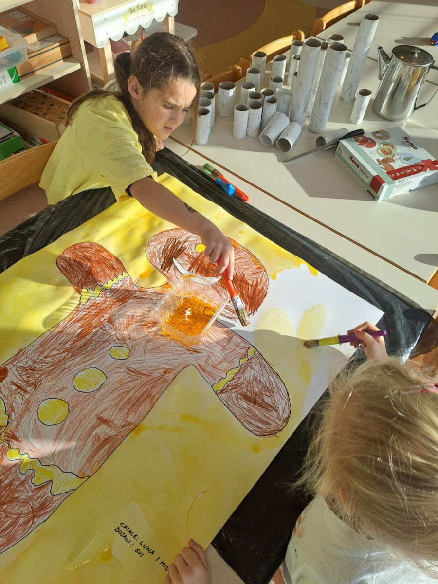 Umjetničkom slikovnicom aktivirali smo i svoja osjetila i otkrivali važnost osjetilnog učenja,pa smo se zapitkivali što sve možemo dodirivati, kušati,mirisati, slušati…Antropomorfizam kojim su neljudskim bićima dane neke osobine i karakteristike ljudi omogućile su nam emocionalnu identifikaciju i razvijanje empatije isocijalnih odnosa. Pričom smo učili brojeve i brojati čak unatrag,otkrivali pojam vremena i dana u tjednu te dijelove dana,prepričavali po redoslijedu događanja.