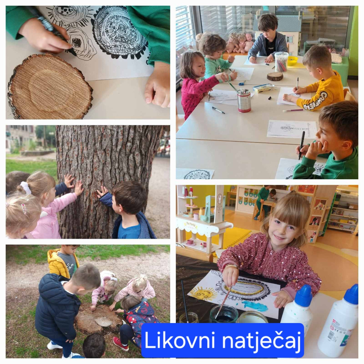 I ove godine sudjelovali smo u likovnom natječaju Volim šume. Tema su bili godovi, prvo smo ih istražili a zatim crtali i slikali. Mi smo se trudili možda i dobijemo nagradu..