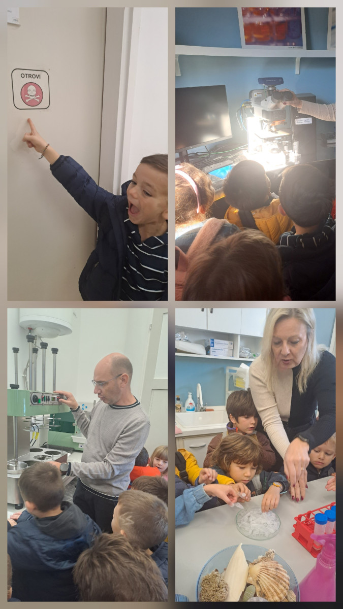 U sklopu projekta Vrtić zdravlja posjetili smo Institut za poljoprivredu i turizam gdje smo saznali sve o maslinama, sortama, nametnicima, degustirali smo kvalitetno i manje kvalitetno ulje i prepoznavali razliku. Posebno zanimljivo bilo je u genetičkom laboratoriju gdje smo uočavali topivost u tekućinama i reakciju promjene boje usljed dodavanja kiseline.