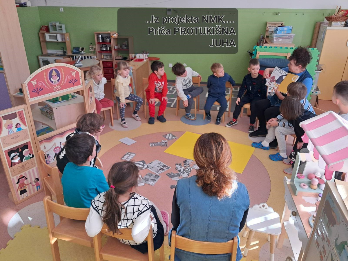 U projektu Naša mala knjižnica obradili smo slikovnicu Protukišna juha. Neobična tekstom i ilustracijama potaknula nas je na kreativno smišljanje vlastitih rješenja. Važno je osvijestiti važnost proaktivnosti u svakodnevnom životu.