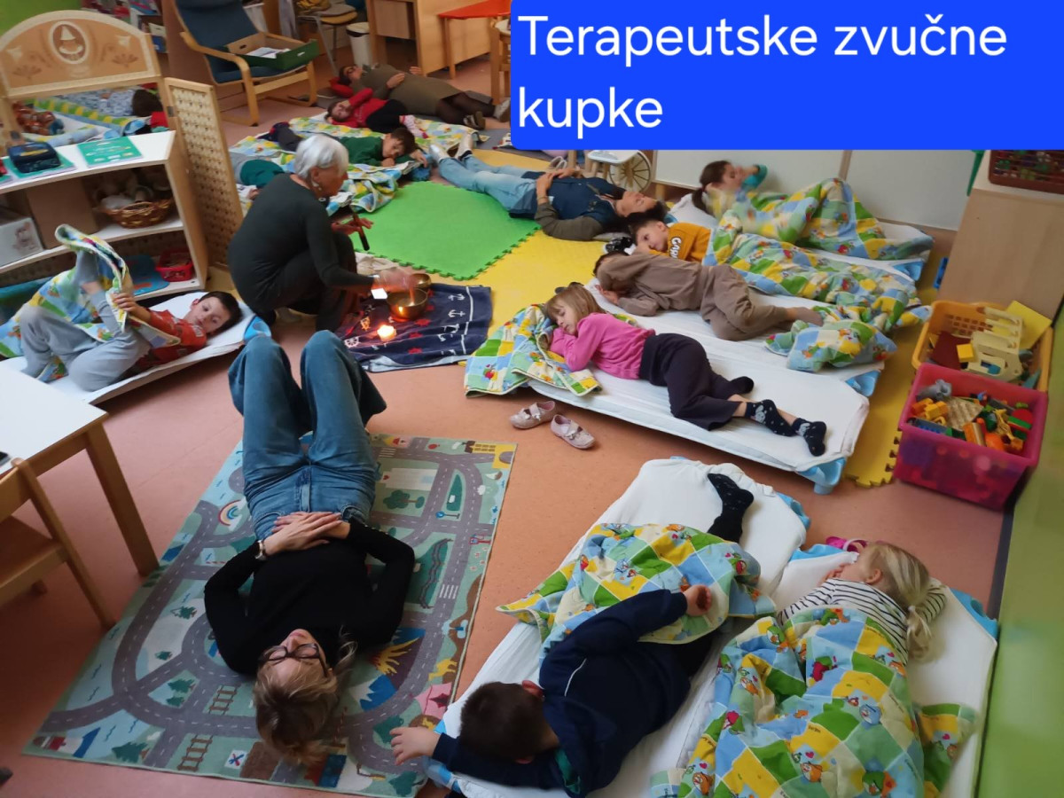 U sklopu projekta Vrtić zdravlja razgovarali smo o mentalnom zdravlju i metodama opuštanja. Posjetila nas je terapeutica sa kojom smo se opuštali metodom zvučne kupke. Svidjele su nam se vibracije i zvukovi bakrenih zdjela i udaraljki bilo je jako smirujuće. Neki su čak i zaspali 🙂.